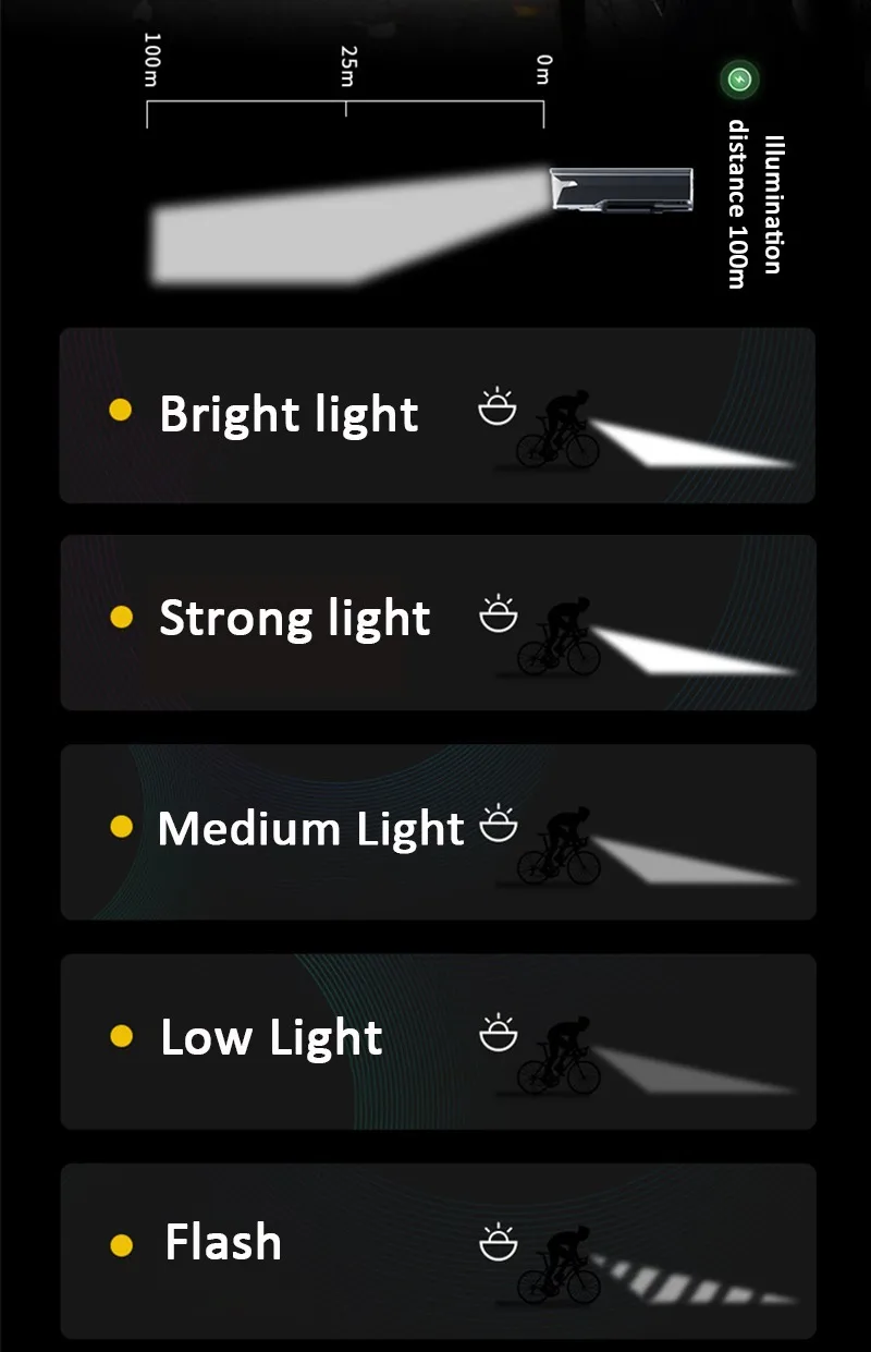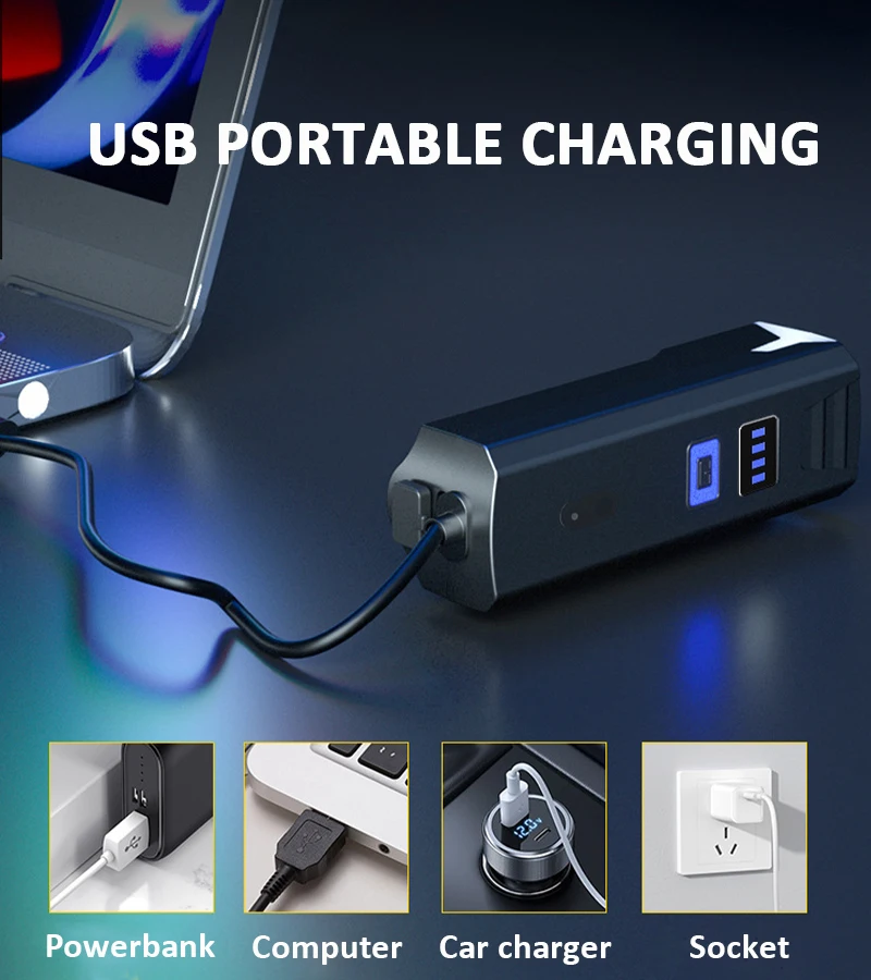 Features: bright lumen, light switch, Type-c fast charge, durable battery life, power display, IPX-5 waterproof, quick disassembly