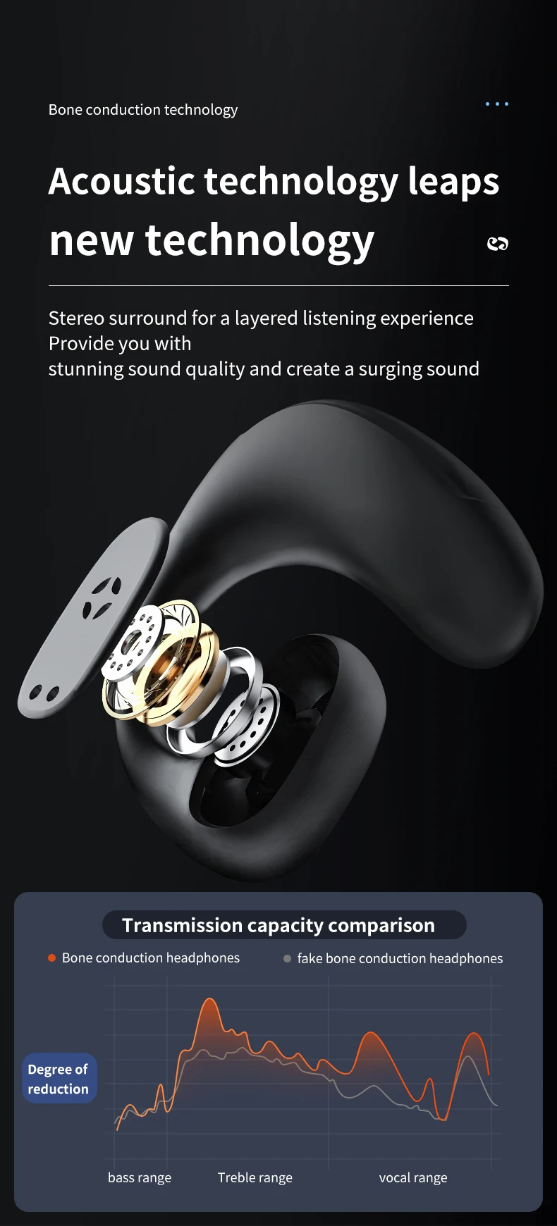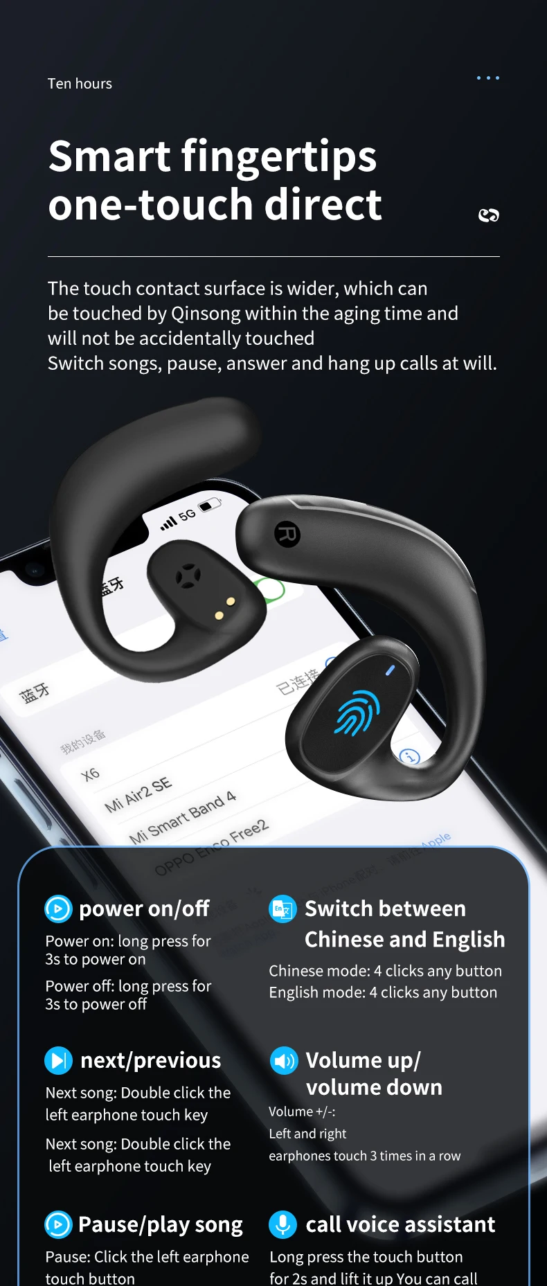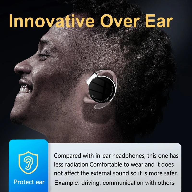“Over ear” earphone just hang over our ears, not into ear, it is comfortable and health. We can hear the external sound while we use it. That is much more safer for driving and good for our communication with others.
